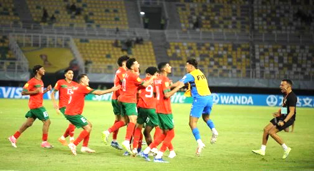 Surabaya (Indonésie) – La sélection marocaine de football des moins de 17 ans (U17) s’est qualifiée en quarts de finale de la Coupe du monde de la catégorie, après sa victoire aux tirs au but face à l’Iran sur le score de 4 buts à 1 (1-1 temps réglementaire), en match disputé mardi au stade Gelora Bung Tomo de Surabaya (Indonésie).